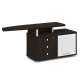 Верх, крышка и дно изготовлены из плиты толщиной 25 мм. Кромка верхнего топа - ПВХ 2мм. Кромка крышки и дна по переднему и заднему торцам - ПВХ 2 мм. Кромки остальных срезов - ПВХ 0,4 мм. Боковые стенки и Т-образная перегородка выполнены из плиты толщиной 16 мм. На внешние торцы Т-образной перегородки установлен пластиковый профиль цвета "Металлик" сечением 32х32 мм. Задняя стенка: ЛДСП толщиной 16 мм. Три ящика частичного выдвижения.Каркас ящика и фасады изготовлены из плиты толщиной 16 мм. Внутренний размер ящика: ширина 354 мм, глубина 433 мм высота 100 мм. Ящики с роликовыми направляющими, серого цвета. Дно ящика изготовлено из ХДФ с односторонней облицовкой серого цвета. Нагрузка на ящик (направляющие) - 30 кг. Верхний ящик оборудован замком со складным ключом. Ручка – кнопка с поднимающимся язычком, размером 15 мм х 30 мм. Материал - цинковое литье, цвет - хром матовый. Опоры: диаметр 50 мм, высота 27 мм. Регулировка ±10 мм. Материал - пластик серый. Цвета: Орех Вирджиния, Дуб Кентербери, Дуб Кобург.