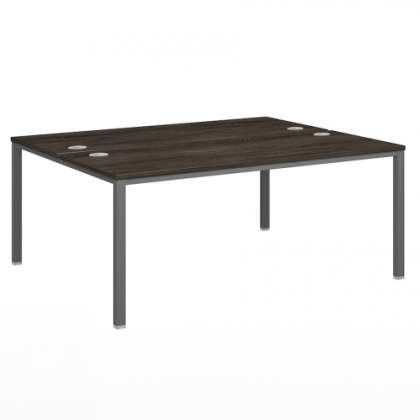 Стол-тандем на 2 рабочих места, на металлокаркасе. Каждая столешница укомплектована 2 заглушками кабель-канала диаметром 80 мм, производства компании "Aza plastici" (Италия). Расстояние между столешницами - 32 мм под установку экранов или декоративных заглушек. Столешница - ЛДСП 25 мм, облицована противоударной кромкой ПВХ 2 мм. Металлокаркас представляет собой разборную конструкцию, состоящую из опор и траверс, стянутых между собой крепежными узлами. Профильное сечение опоры 40х40, траверсы 30х30. Траверсы расположены по периметру столешницы, свес 8 мм. Высота каркаса (до нижней плоскости столешницы) — 725 мм. Опоры плотно прилегают к столешнице. Регулируемая опора, с регулировкой до 10 мм. Цвет металлокаркаса (окрашен порошковой краской): антрацит, текстура поверхности – муар. Поставляется в разобранном виде. Цвета столешницы: Орех Вирджиния, Дуб Кентербери, Дуб Кобург.
